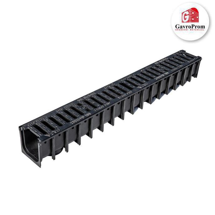 Uradi sam ili DIY B125 SemDrain polipropilenski kanali za oborinsku odvodnju sa već ugrađenom lijevano željeznom rešetkom.