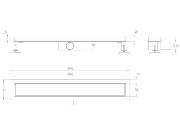 - Dimenzije gornjeg vidljivog dijela 1000x70mm i ukupne visine 70mm.