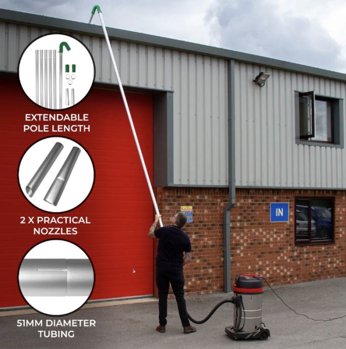 S promjerom stupa od 51 mm, komplet usisavača učinkovito hvata i uklanja otpad, lišće, grančice i druge neželjene materijale iz vaših oluka. Ovaj pažljivo izrađen dizajn pomaže maksimizirati protok zraka i smanjiti začepljenje, osiguravajući temeljito čišćenje svaki put.