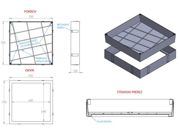 ULJNI ŠAHT – POKLOPAC sa dnom i čeličnom armaturom 700 X 700 X 100mm I