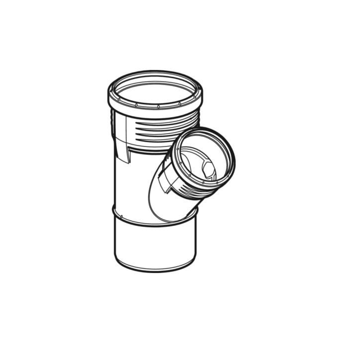 Geberit Silent-PP račva 45° Temperatura kod montaže: -10 – +40 °C Materijal: PP-MD Toplinsko rastezanje: 0.08 mm/(m·K) - Za odvodnju otpadne vode unutar zgrada - Za sustave centralnog usisavanja u jednoobiteljskim kućama primijeniti isključivo dimenzije DN 40–50 - Za tlačne vodove pumpi za otpadnu vodu prema EN 12050-2 i EN 12050-3 koristiti isključivo dimenzije DN 32–50