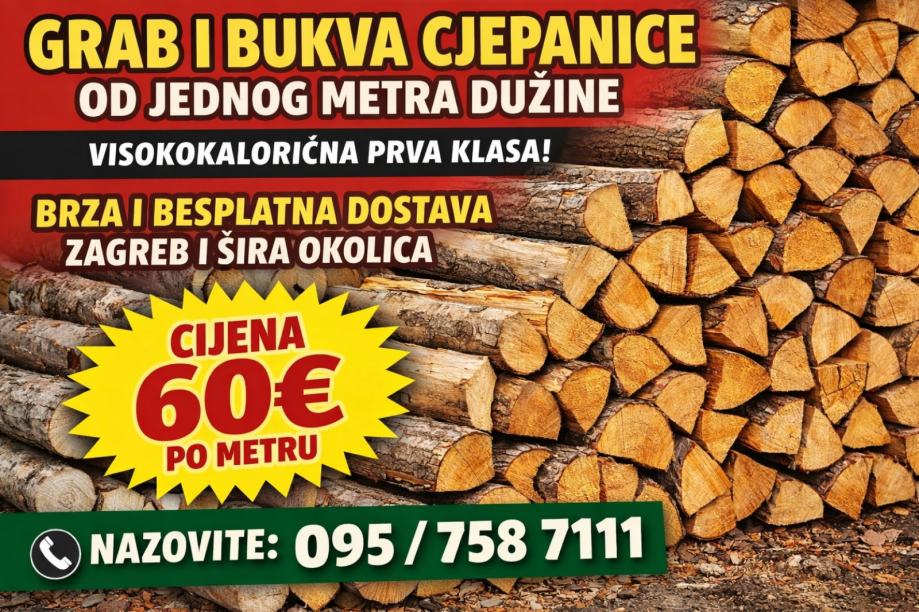 GRAB I BUKVA CJEPANICE OD JEDNOG METRA DUŽINE VISOKOKALORIČNA PRVA KLASA.