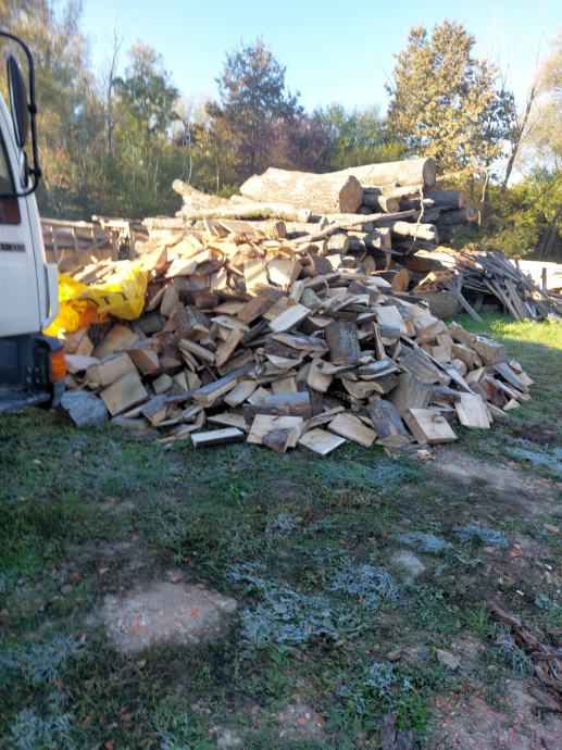 Drva kratko piljena na 25-33 pilanski okrajki hrast prosusena krupni pogodno za kamine i centralne peci kamion 7m3 350e dostava u cijeni
