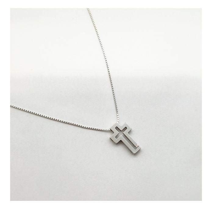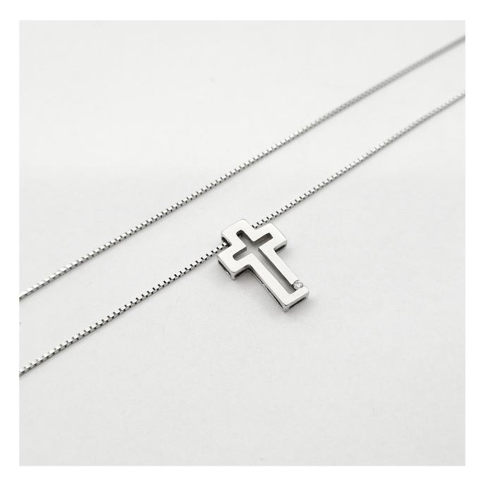 14K BIJELO ZLATO LANČIĆ SA PRIVJESKOM KRIŽ 2,70G