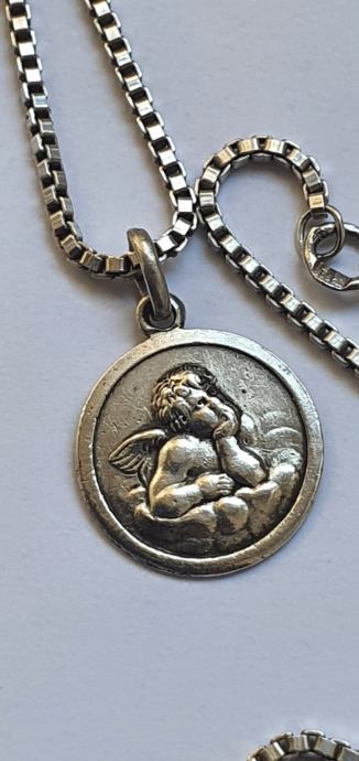 Krasan Art deco set Venecijaner kockice vez lanac duzine 50 cm i privjesak Anđel visina 2 cm promjer 1.5 cm