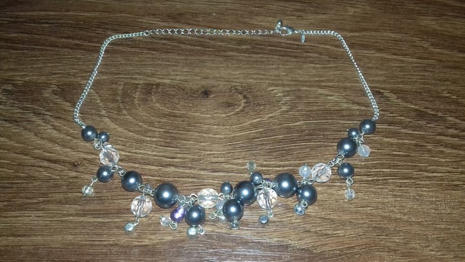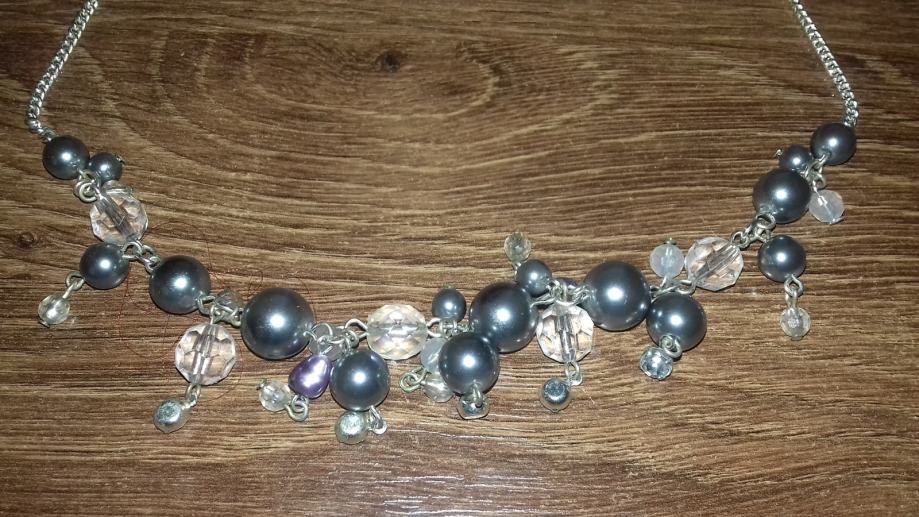 Bijela ogrlica sa sivim i bijelim ukrasima - BIŽUTERIJA.