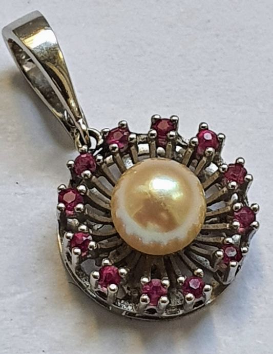 Kopča 1.6 cm -1.8 cm x 1 cm ukrašena sa biserim i dva rubina od 2,5 mm predivnog starog dijamantnog brusa