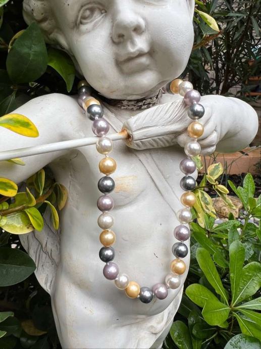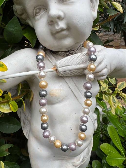 Biserna ogrlica prirodni tahićanski biseri U ANTRACITNOJ, RUŽIČASTOJ, BEŽ I KREM BIJELOJ BOJI
