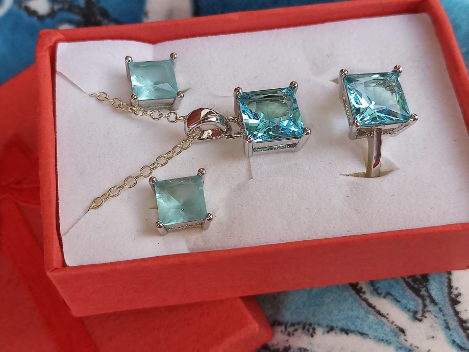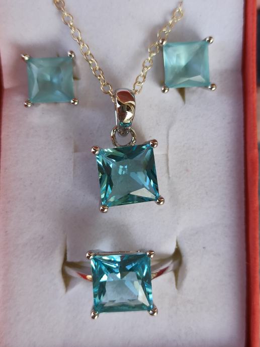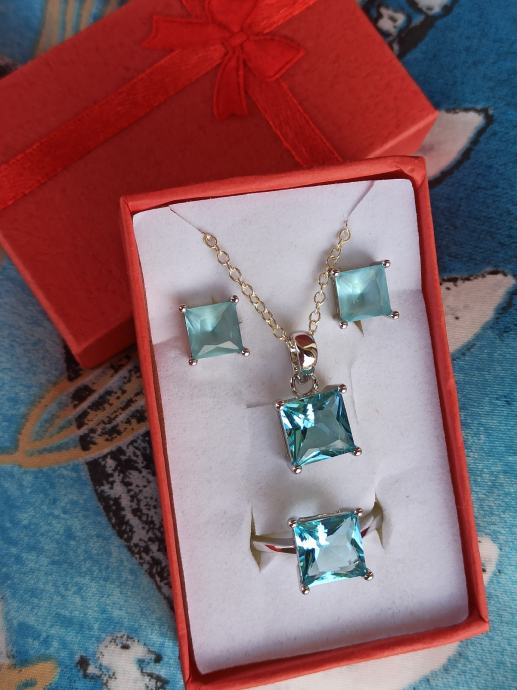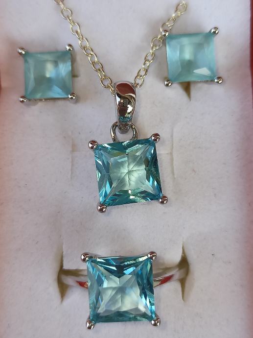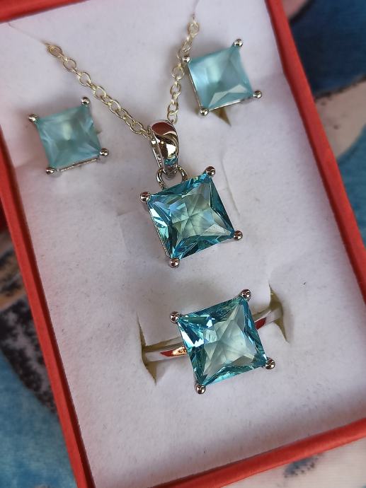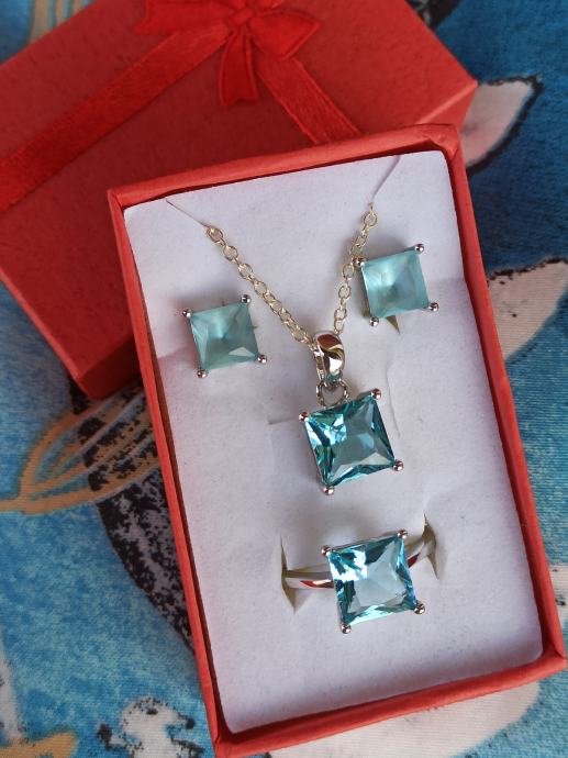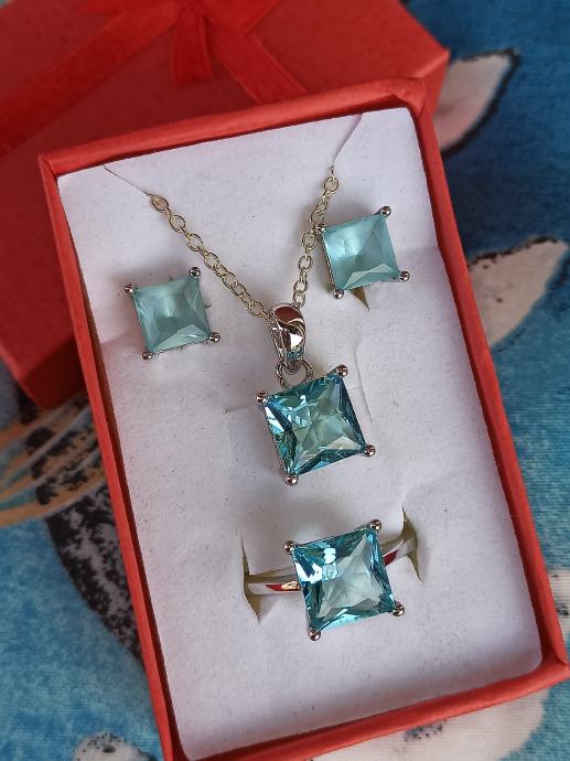 AKVAMARIN KOMPLET naušnice, privjesak i prsten