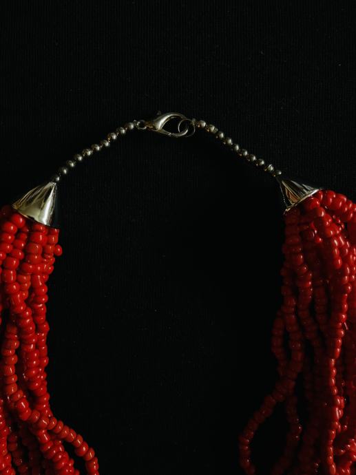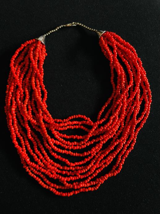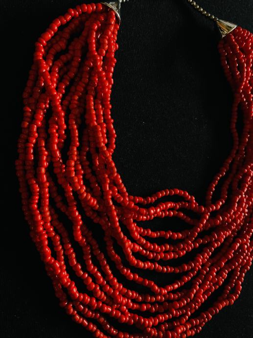 Koraljno crvena ogrlica od plasticnih perli