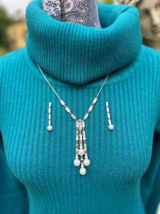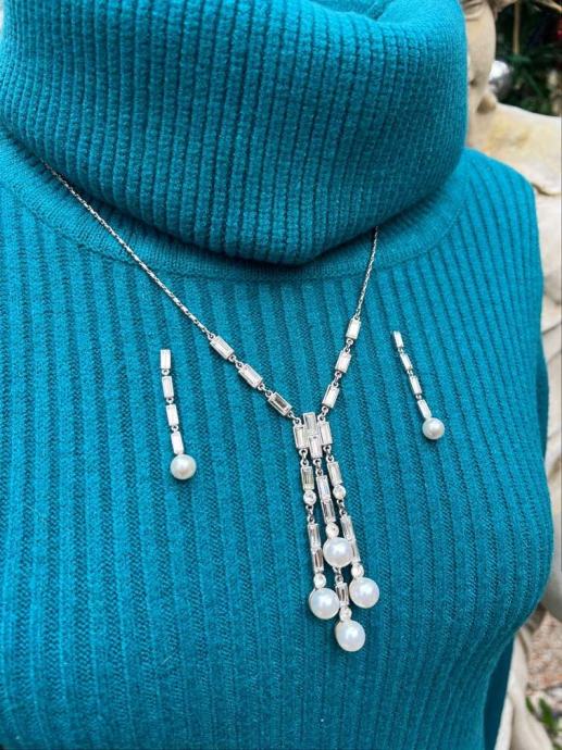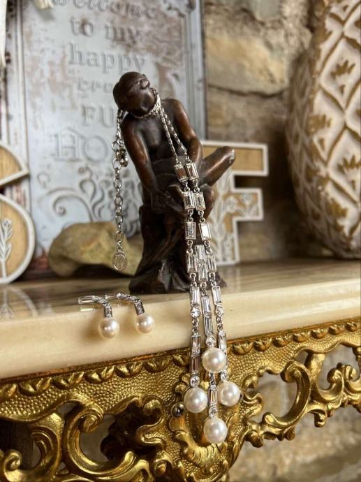 Dizajnerski set ogrlice i naušnica "Ben Amun" Nježni biseri i kristali