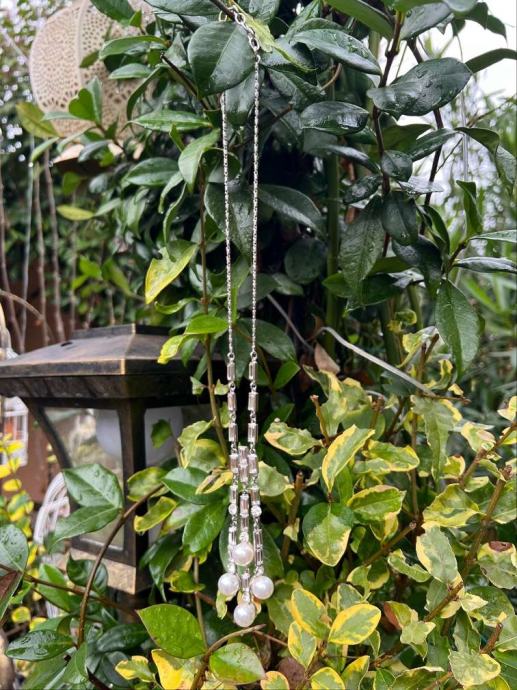 Dizajnerski set ogrlice i naušnica "Ben Amun". Nježni biseri i kristali
