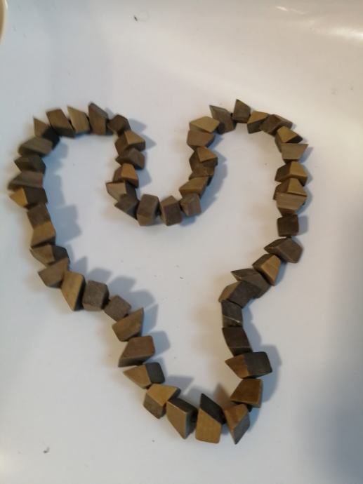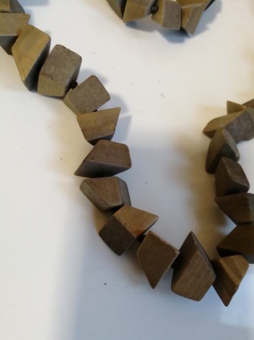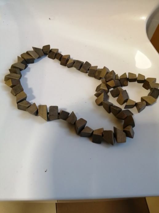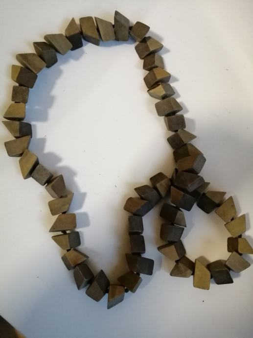 PREDIVNA OGRLICA KOJU LAKO MOŽETE KOMBINIRATI JER SU PRAVE ZEMLJANE BOJE. NEOBIČNI OBLICI NIŽU SE JEDAN DO DRUGOG. DULJINA 80 CM. NEMA KOPČU VEĆ SE PREBACUJE PREKO GLAVE.