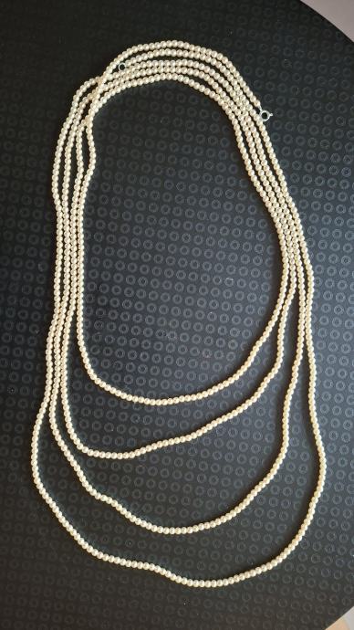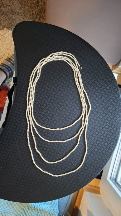 Prodajem elegantnu, 3 metra dugu, ogrlicu s bijelim "biserima" koja će savršeno upotpuniti svaki outfit. Ogrlica se može nositi na više načina. Idealna je za svečane prilike ili za svakodnevno nošenje kao statement komad.