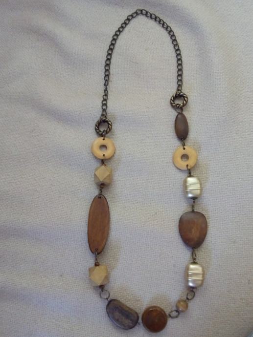 Povoljno prodajem dužu ogrlicu od materijala: kombinacija drveta i metala.