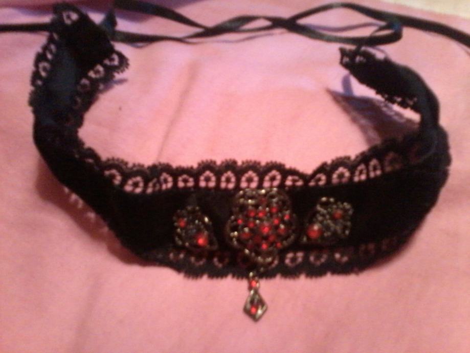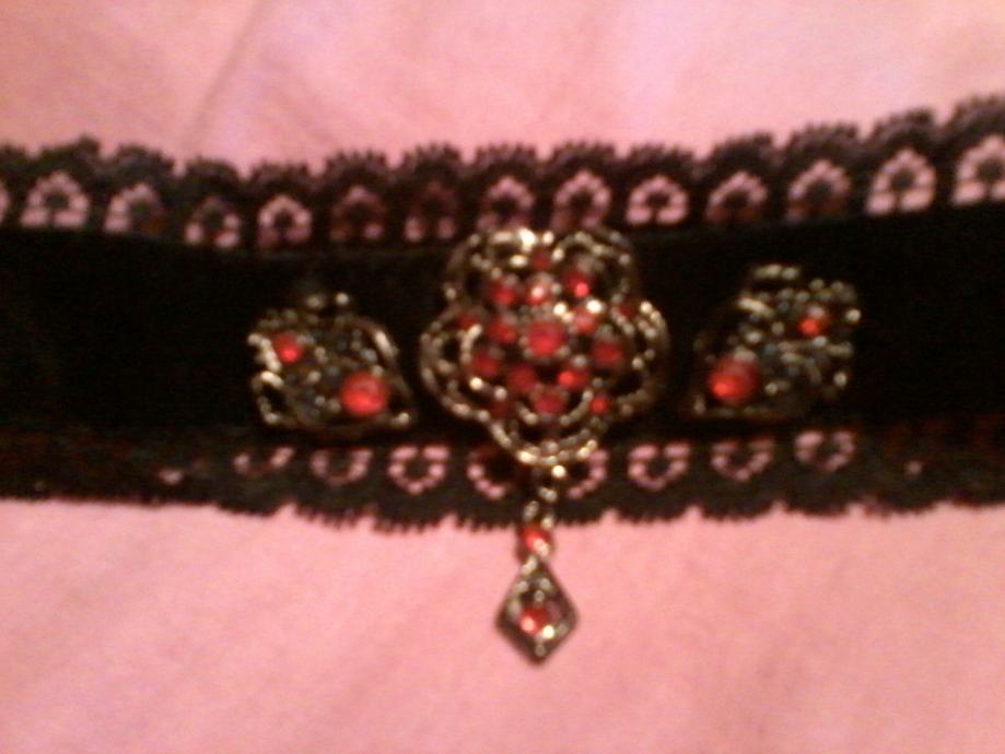 NOVA GOTHIC CHOKER OGRLICA od baršunaste tkanine sa crvenim ukrasima.