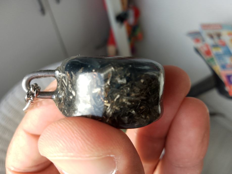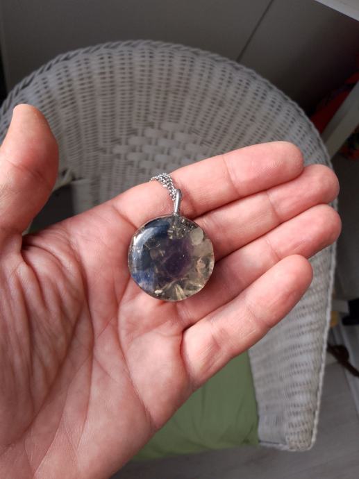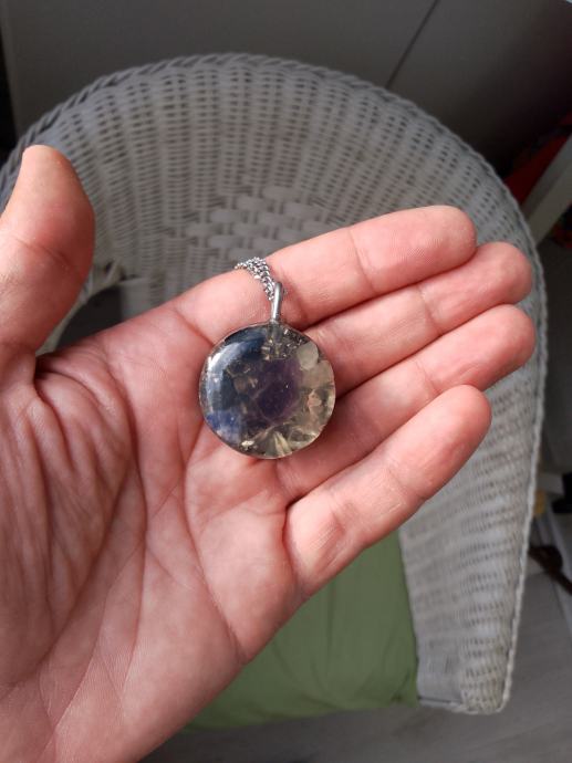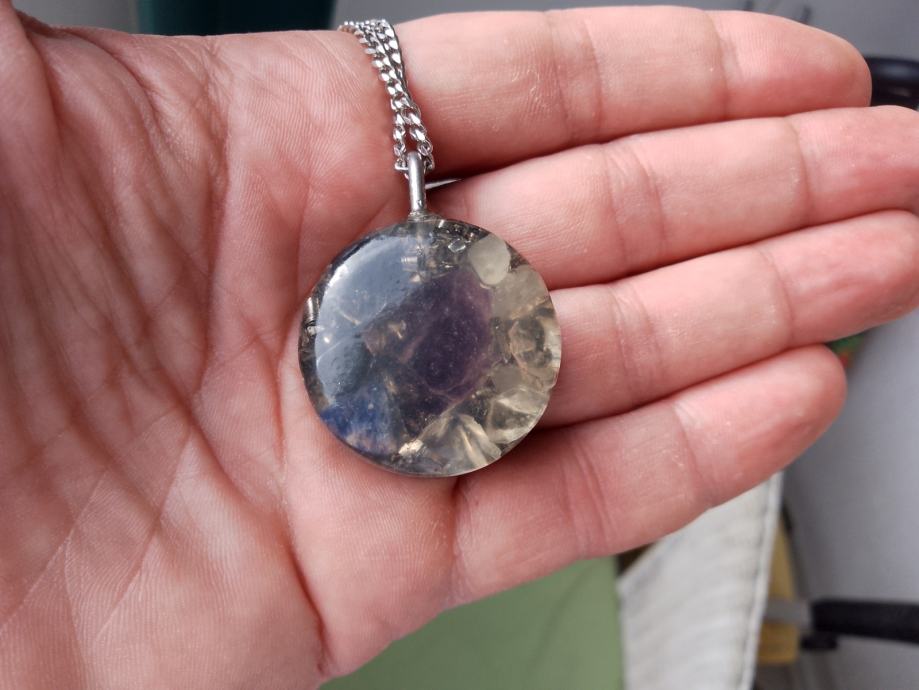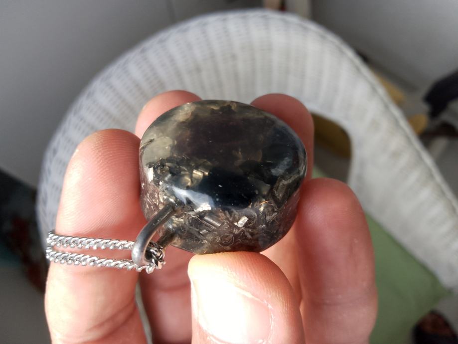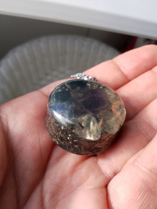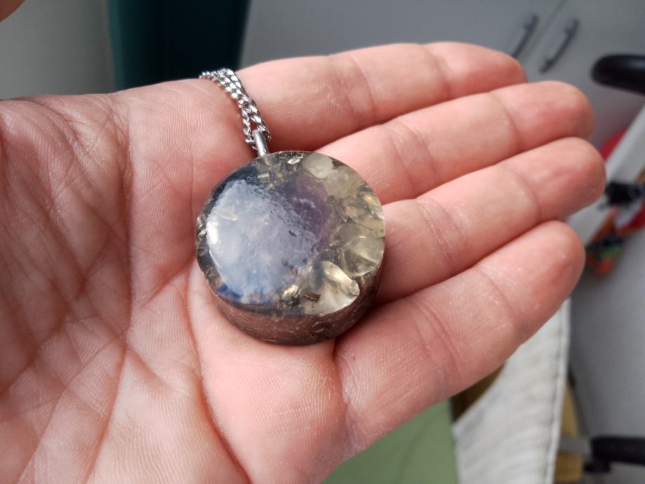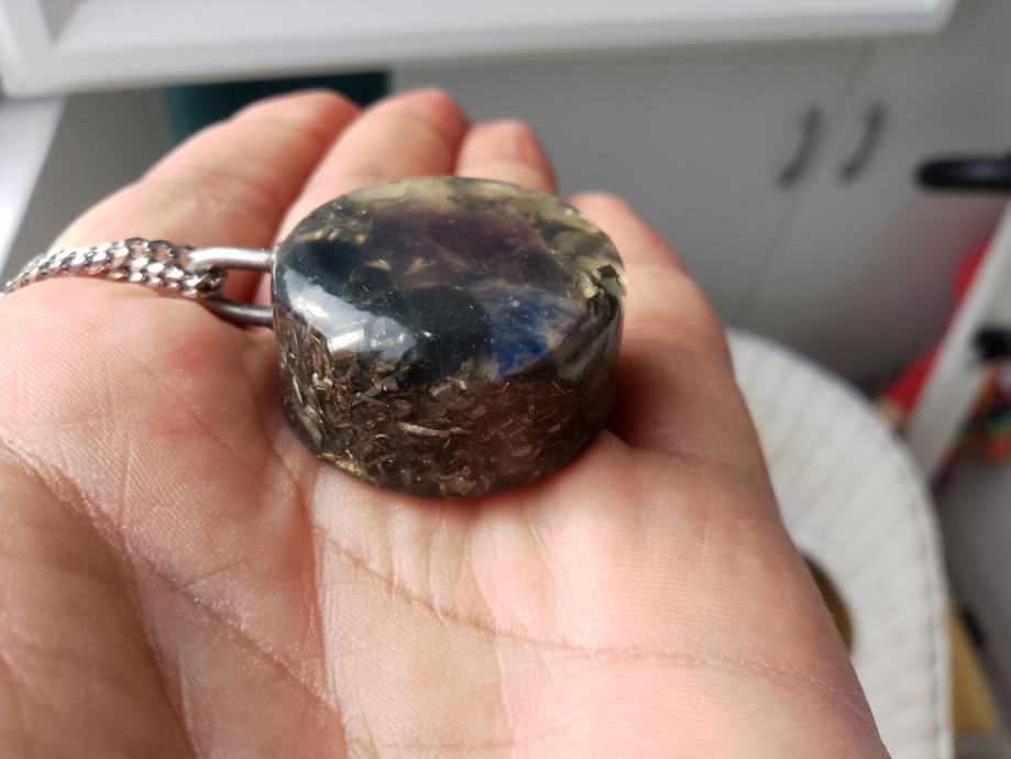 Orgonit u kompletu s lančićem iz moje kolekcije UNIKATNIH (svaki je poseban i drugačiji od ostalih) orgonita koji obiluju PRIRODNIM kristalima i metalom (bez dovoljno metala orgonit nije funkcionalan u odbrani i poništavanju EMF zračenja). Uglavnom su korišteni bakar i aluminij kao dva najbolja metala za orgonite.