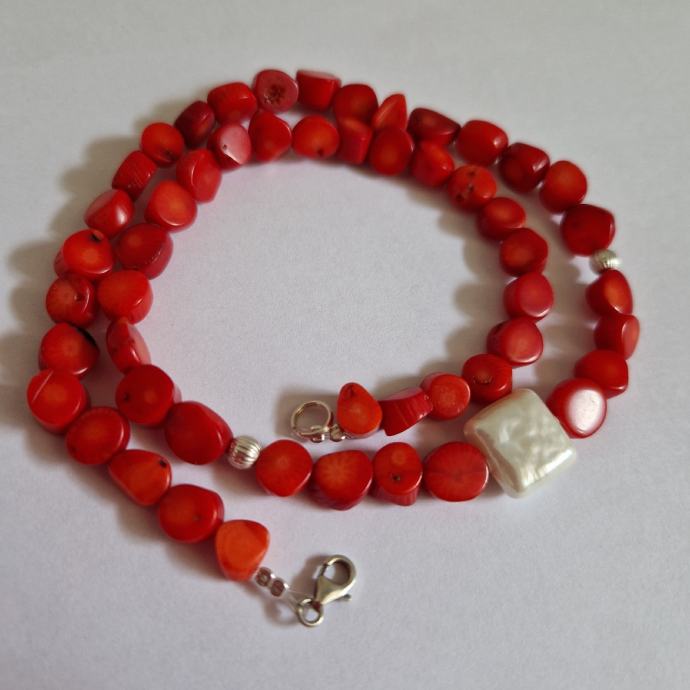 Materijali:crveni koralj,perle nepravilnog oblika.
