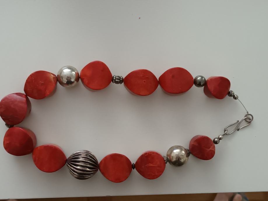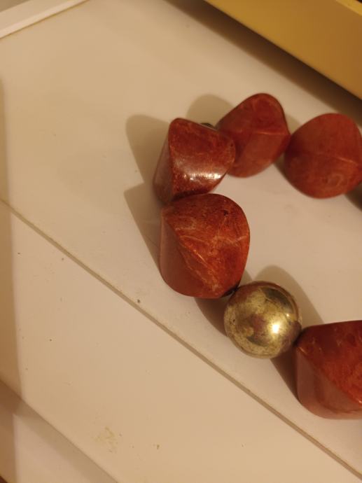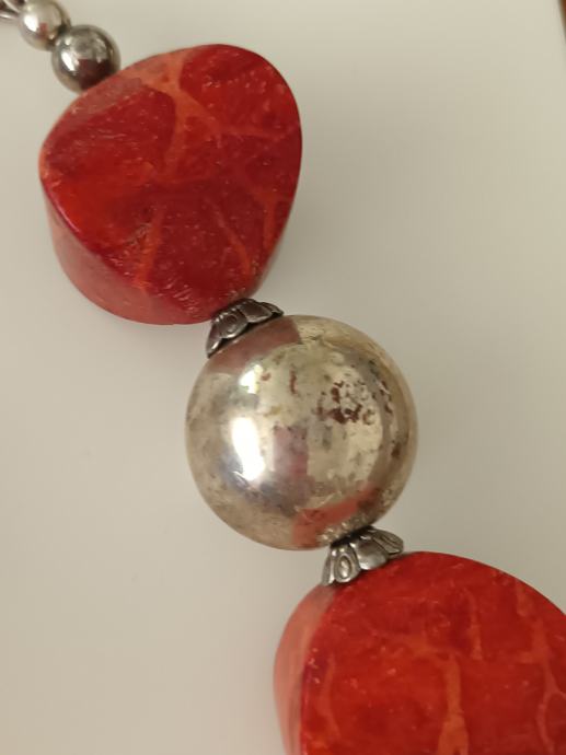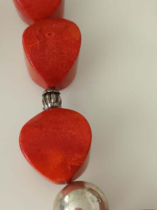 Ogrlica od saum koralja, velicina perli 3,5 do 3,8 cm, u ogrlici metalni dodaci