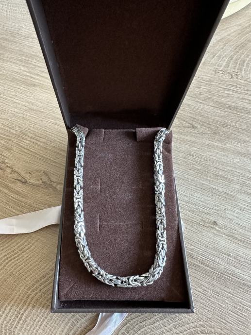 Kraljevski vez,srebrni lančić,nosen par puta i kupljen zlatni tako da mi ovaj vise ne treba!Sisak 0993977700,cijena 300e,60 cm,5 mm,90 grama