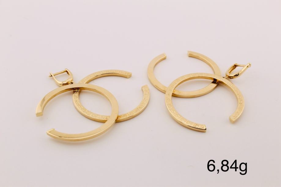 Prodajem zlatne naušnice napravljene od 14kt zlata teške 6,84 grama. Visina 5cm, širina 5cm.