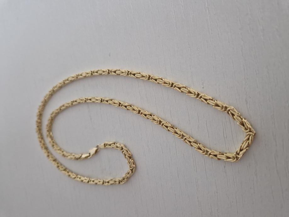Zlatni lanac kraljevski vez vrlo lep elegantan zanimljivog i unikatnog izgleda (težina 19 g) (izuzetno jedinstvena ponuda na našem tržištu). Dužina lanca je 60 cm, širina 0.4 cm, težina: 19 g. Riječ je o lancu od 14 karatnog zlata, oznake 585. Cijena je vrlo povoljna, samo 1900 eura. Za preuzimanje nazovite 0038630414258 (whatsup)