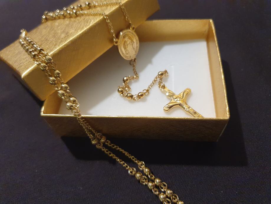 Krunica kirurški čelik cijela pozlaćena Majka Božja