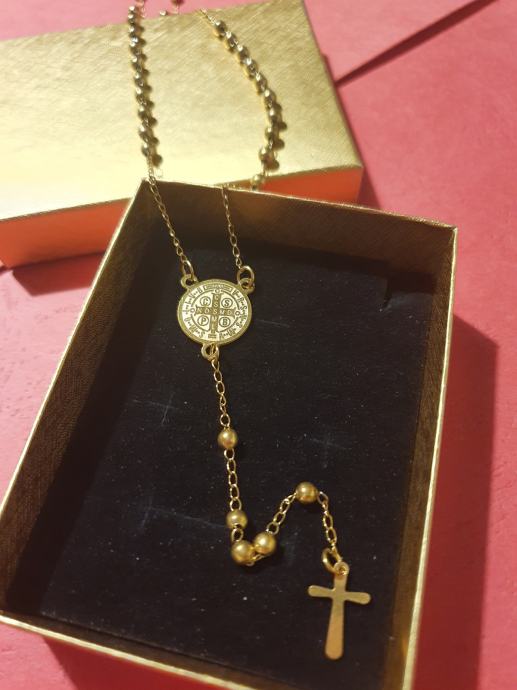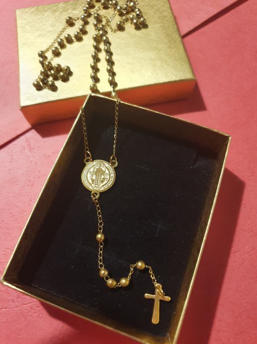 Krunica kirurški čelik cijela pozlaćena sveti Benedikt
