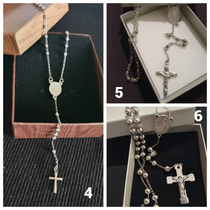 4. Dužina 60 cm (gornji dio) + 10 cm (donji dio), najmanje kuglice, Majka Božja/sveti Benedikt, u boji čelika
