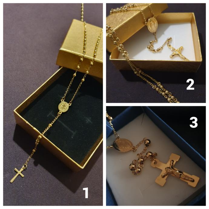 1. Dužina 60 cm (gornji dio) + 10 cm (donji dio), najmanje kuglice, Majka Božja/sveti Benedikt, pozlaćena