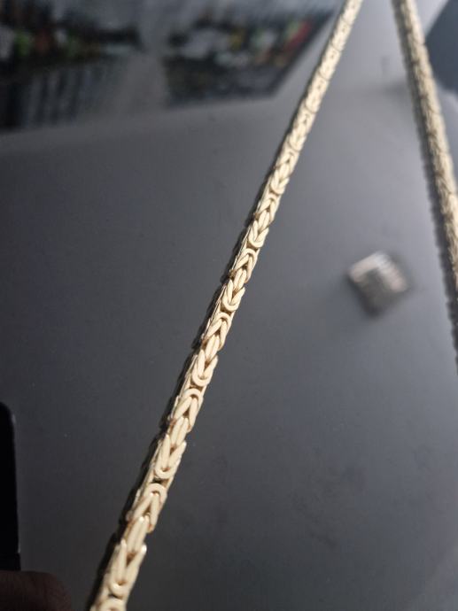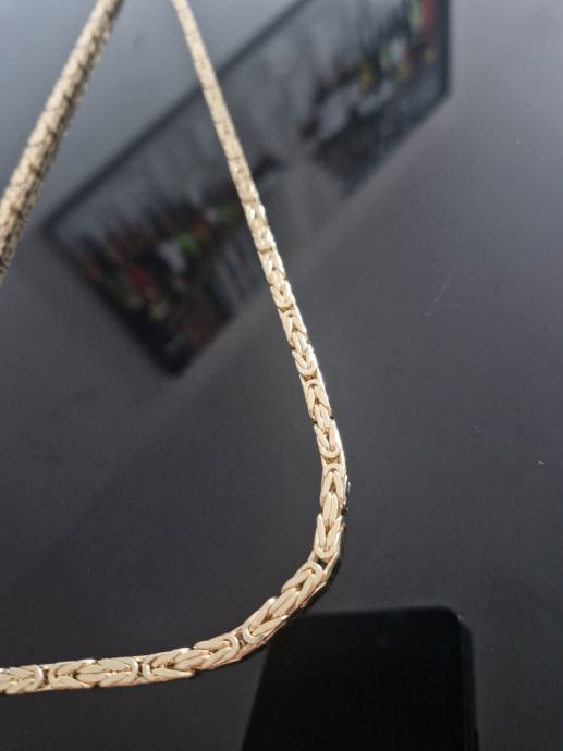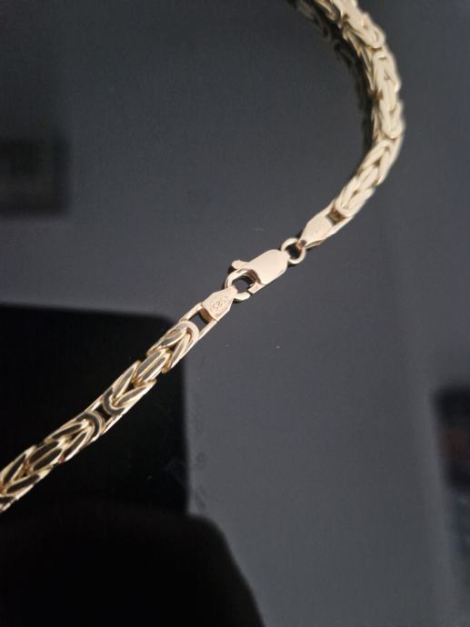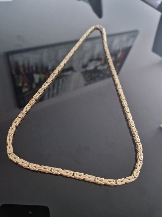 Zlatni lanac kraljevski vez vrlo lep elegantan zanimljivog i unikatnog izgleda (težina 26.1 g) (izuzetno jedinstvena ponuda na našem tržištu). Dužina lanca je 64 cm, širina 0.4 cm, težina: 26.1 g. Riječ je o lancu od 14 karatnog zlata, oznake 585. Cijena je vrlo povoljna, samo 2650 eura. Za preuzimanje nazovite 0038630414258 (whatsup)