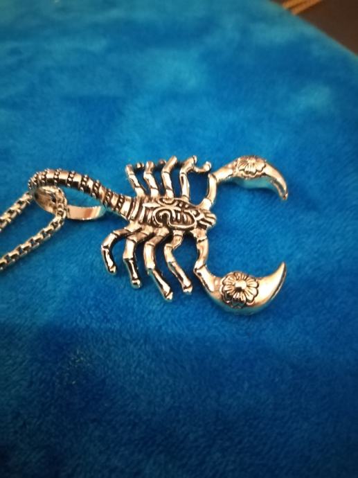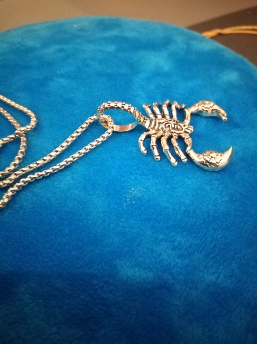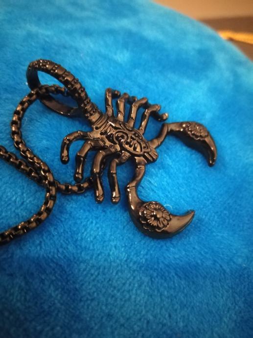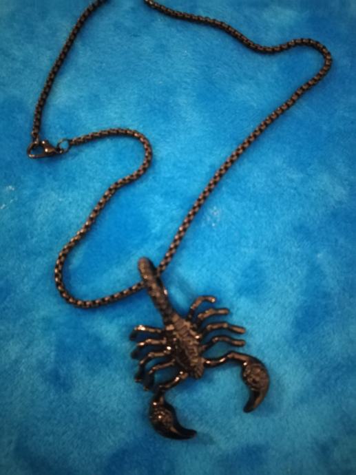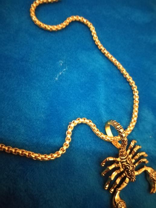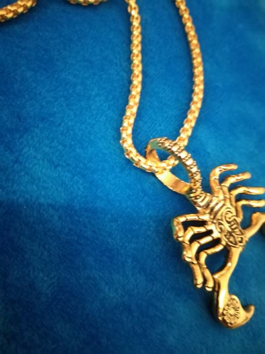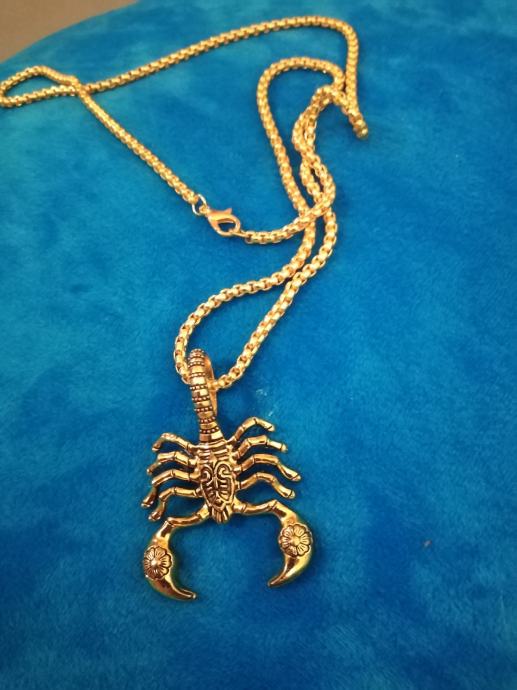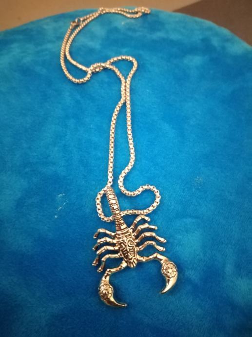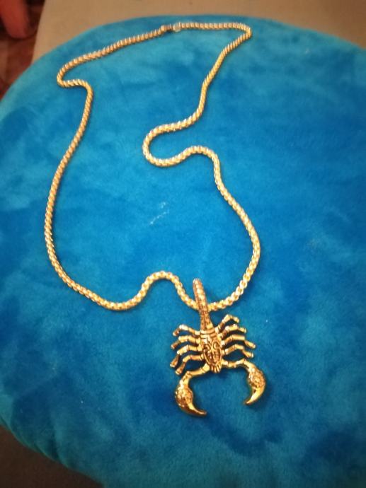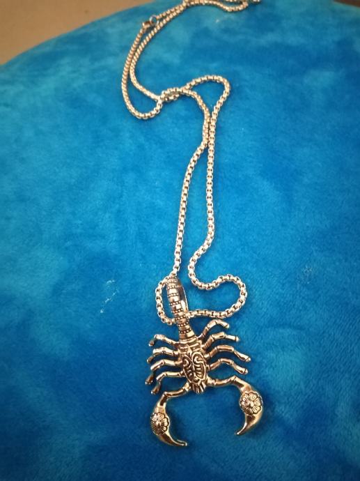 Lanac s privjeskom škorpiona, zlatna, srebrna i crna boja