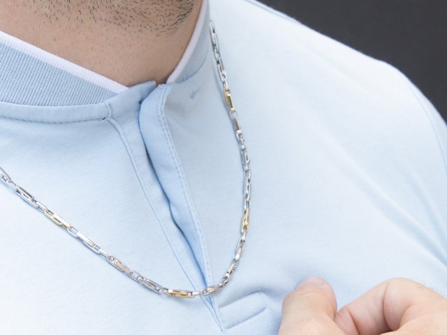 Lančić kare dupli vez, šuplji, kombinacija žuto-bijelo zlato 14K, štambilj 585.