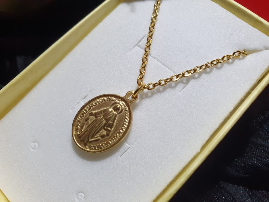 Lančić kirurški čelik čudotvorna medaljica Majka Božja pozlaćena manja