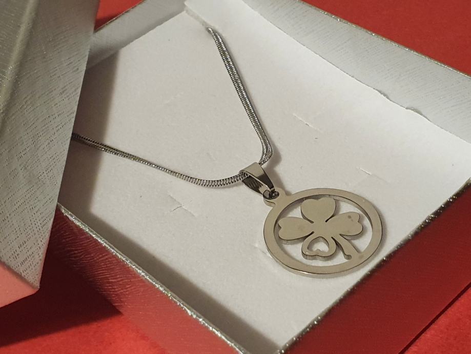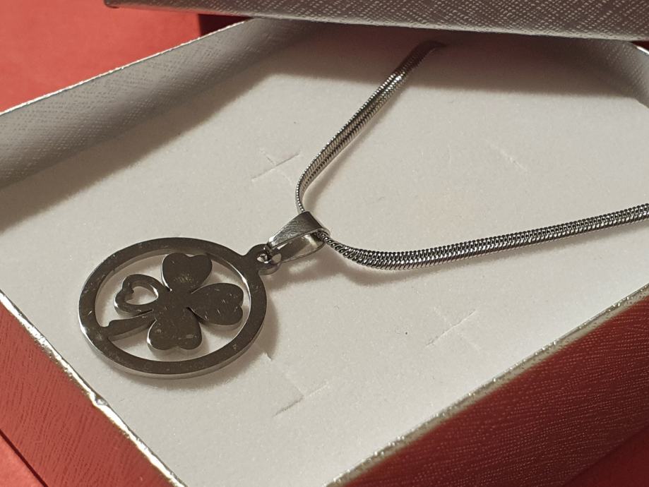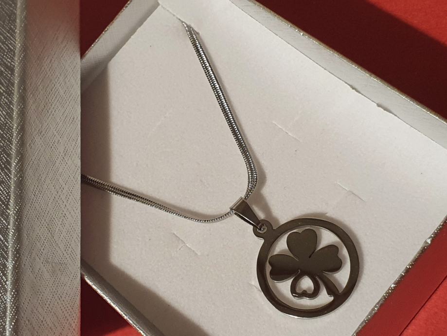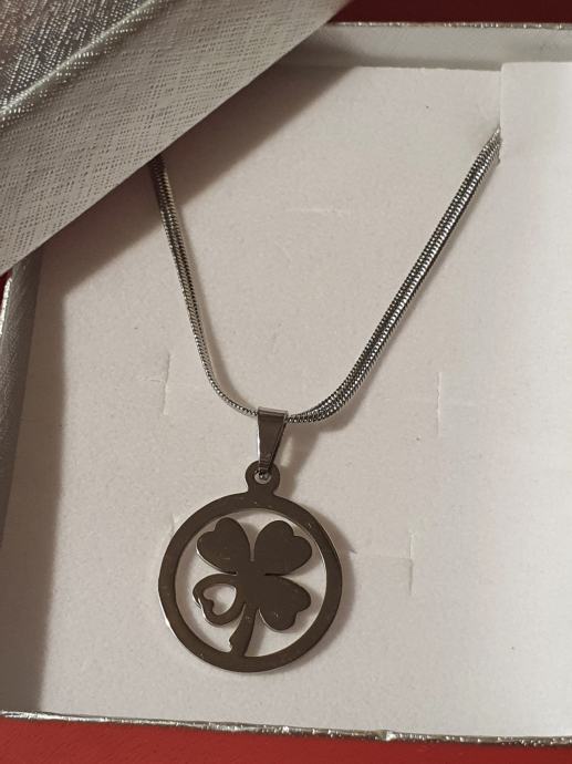 Lančić čini plosnata sajlica dužine 50 cm + 5 cmi veći privjesak djeteline.