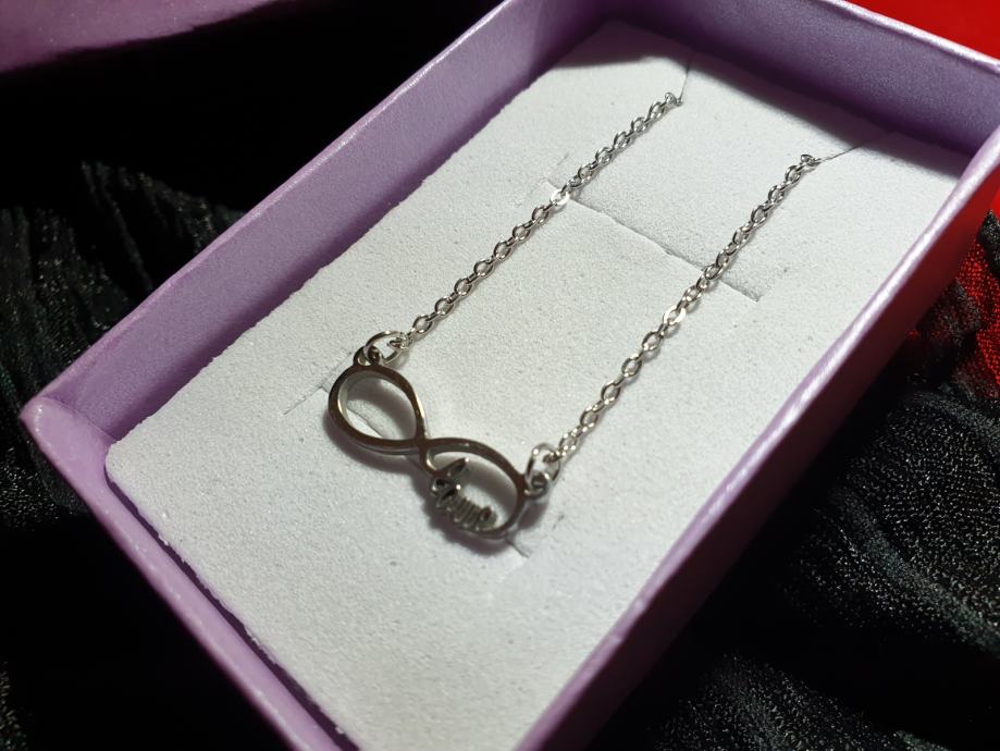 Lančić kirurški čelik infinity i natpis Love