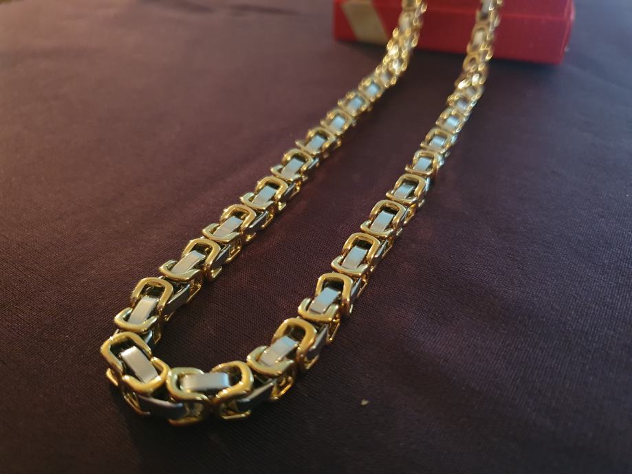 Lančić kirurški čelik kraljevski vez širine 7 mm sa djelomičnom pozlatom