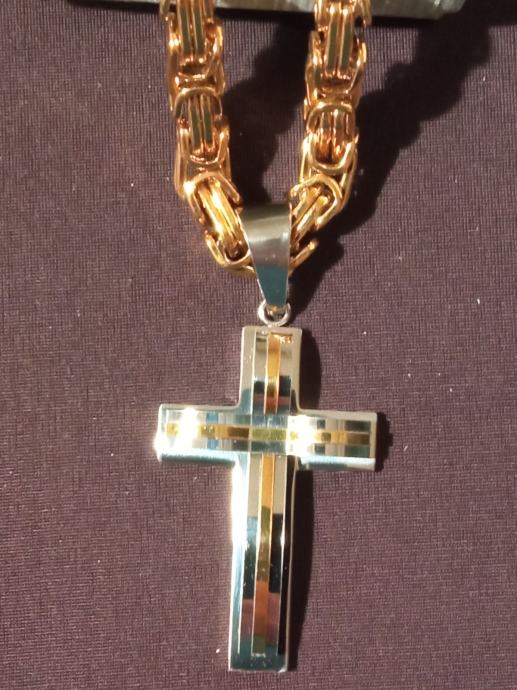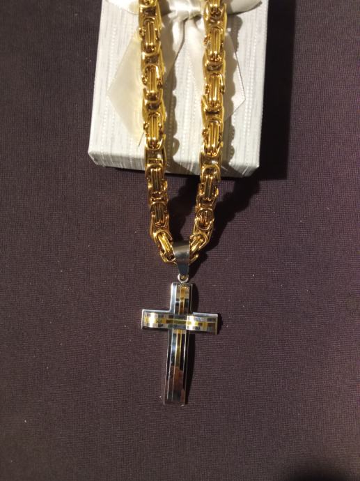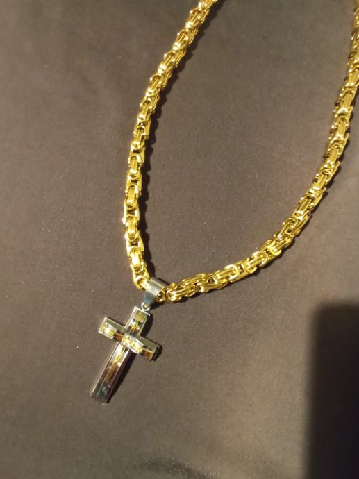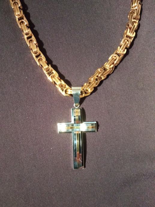 Lančić kirurški čelik kraljevski vez 9 mm cijeli pozlaćeni i privjesak križ kirurški čelik