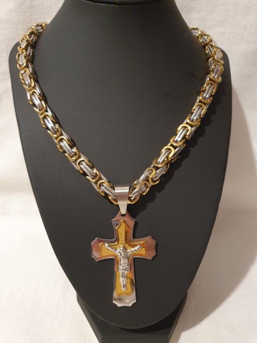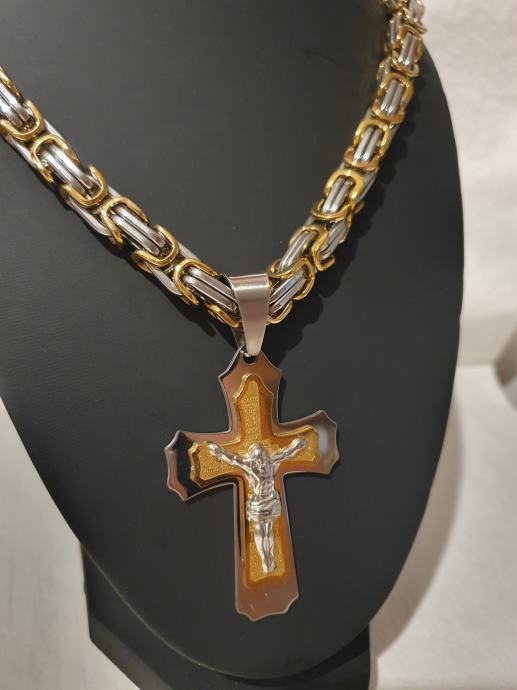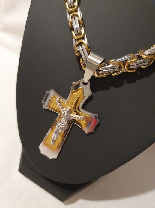 Dužina lančića je 60 cm, a privjesak križ kirurški čelik je veličine 6 cm x 4 cm
