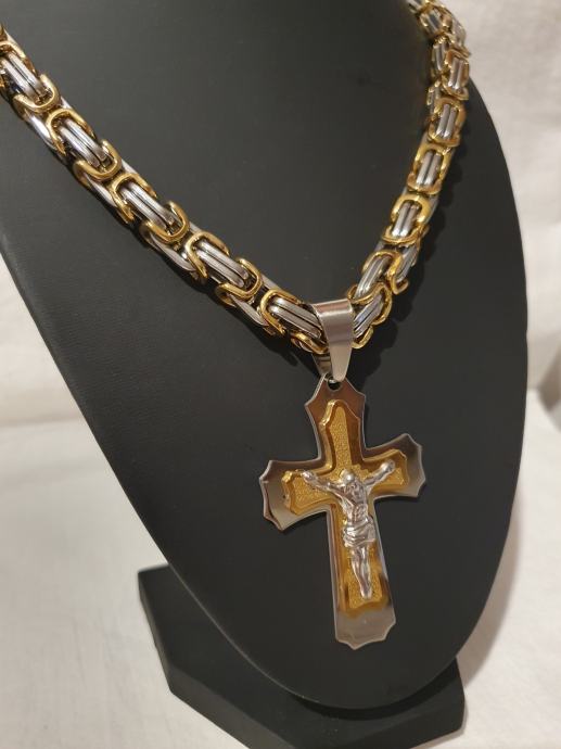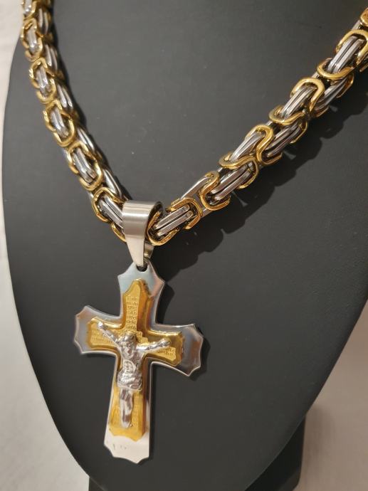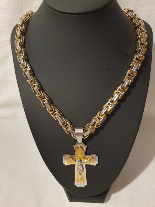 Lančić kirurški čelik kraljevski vez 9 mm sa djelomičnom pozlatom i križ kir.čelik sa pozlatom