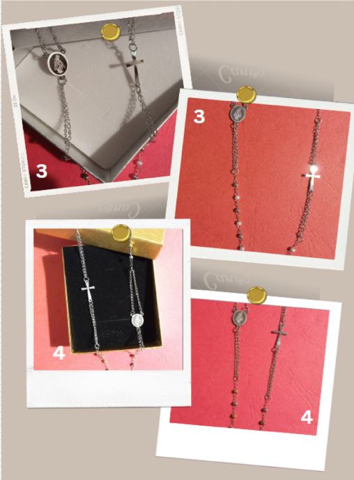 Lančić ne reagira na kiselost kože, ne mijenja izgled (ne tamni), može se nositi u bazene, more, tijekom tuširanja i spavanja, izrazito čvrst materijal koji se ne može lako potrgati, vrlo efektnog izgleda, prikladan za žene i muškarce
