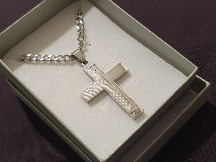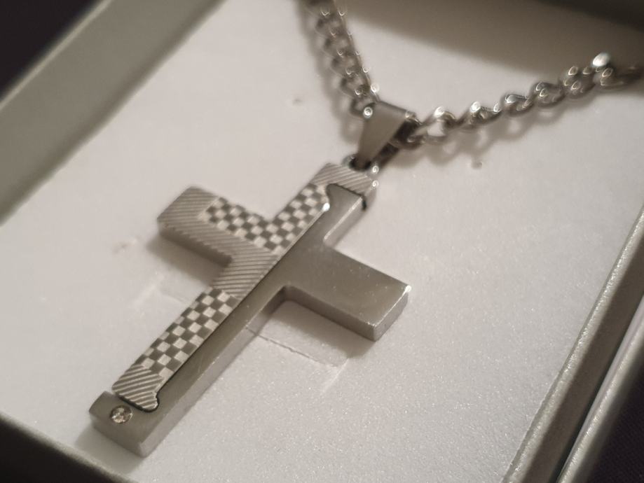 Lančić kirurški čelik kubanski vez 5 mm i privjesak križ kir. čelik