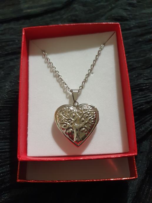 Dužina lančića je 50 cm, a privjesak srca je veličine 2,8 x 2,8 cm