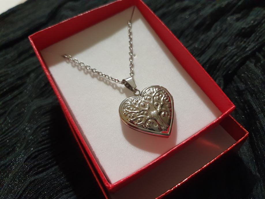 S jedne strane srca je drvo života, a s druge natpis Te amo, srce se može otvoriti i u njega staviti sliku i slično prema želji