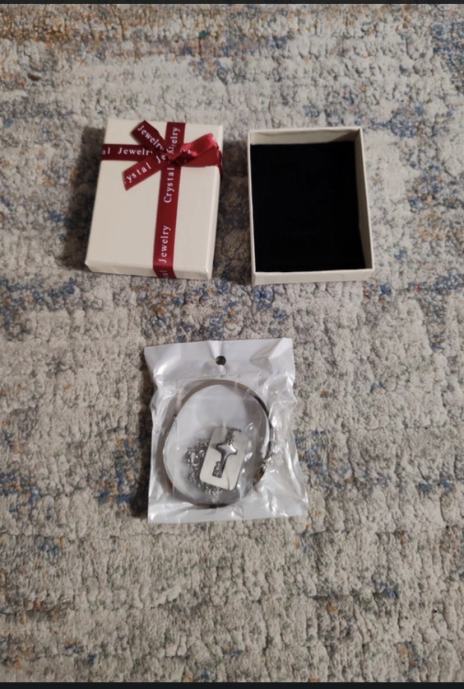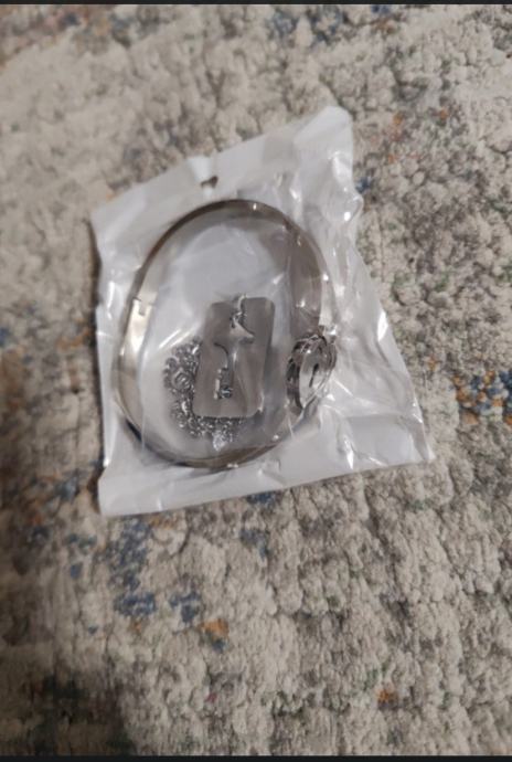 Novo, isprobano je radi. Narukvica koja se otključava kljucicem koji je zakačen na lančiću I otključava se okretanjem ključa skroz U lijevo I zaključavanje se nazad kad je prema desno i izvađen. Kupljen je za 15 eura nije koristen.