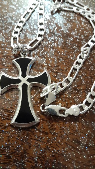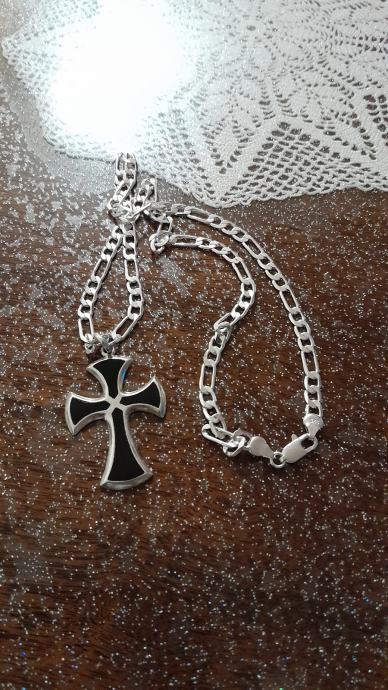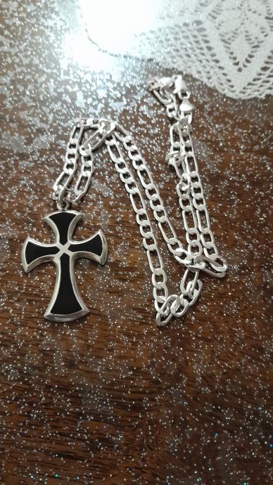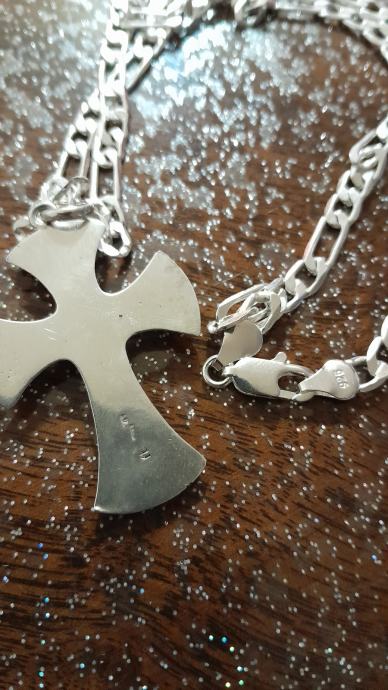 Srebrni lančić i križ,srebro 925,dužina 56cm x5mm,križ 33x50mm,lančić je nov