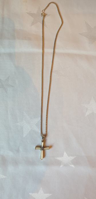 Srebro (925) Duljina lančića 48 cm. Križić srebro s markizitima i sedefom. Duljina križića 3,5 cm.