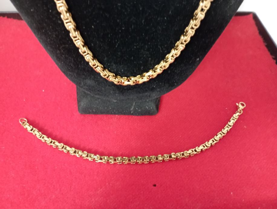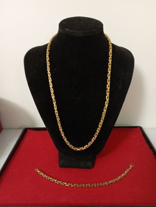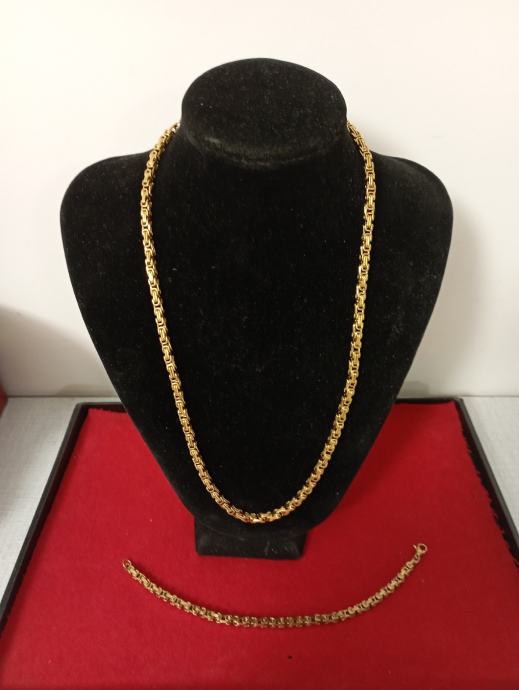 Extra kvalitetan kiruški čelik+pozlata,model Cartie,dužina lančića 55 cm,otporan na vodu,slanu vodu...težina 35gr.bogatog,masivnig izgleda..., te narukvica 11 gr,zajedno 46 gr.pogledajte i ostale moje oglase,šaljem poštom tekući