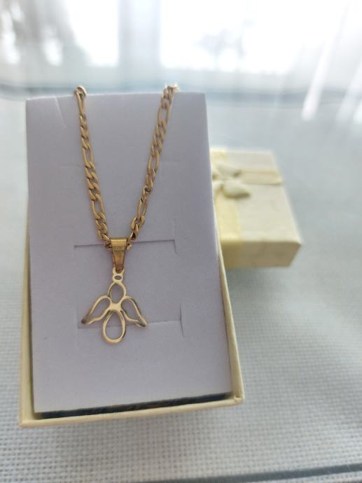 Novi lančić sa etiketom od nehrđajućeg čelika te privjeskom anđela ,u poklon kutijici