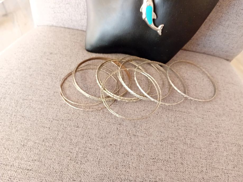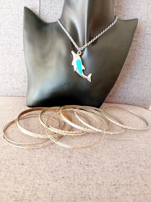 Delfin ima tirkizno-plavi detalj + LOT narukvica srebrne boje u obliku tankih niti. One imaju različite teksture i uzorke, što im daje elegantan i klasičan izgled.